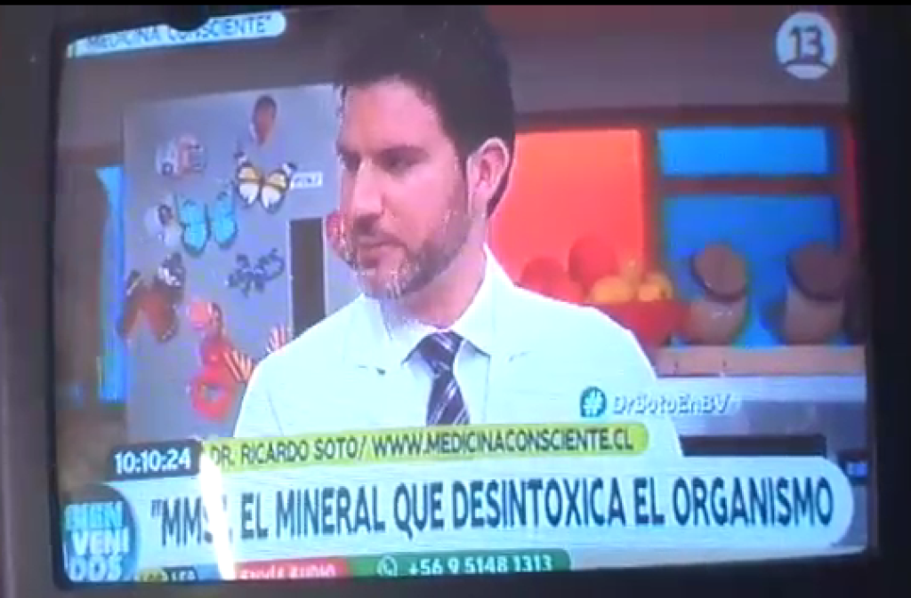 Reportaje en Tv chilena Canal13 donde el Dr Ricardo Soto expone los beneficios y propiedades que tiene para la salud el MMS dióxido de cloro